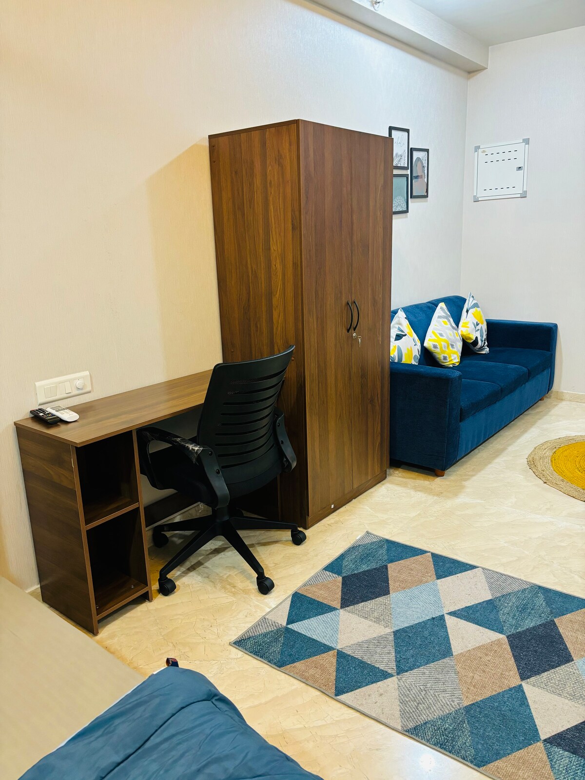 Welcome to PeakView Studio by OasesHomes – a cozy, budget-friendly stay in Hiranandani Estate, Thane. Enjoy a comfortable bed, Smart TV, Wi-Fi, a fully equipped kitchen, washing machine, and daily housekeeping. The apartment includes branded toiletries, fresh linens, and 24/7 gated security. Located close to cafés, clinics, and “The Walk,” it's perfect for short trips, business stays, or peaceful retreats.