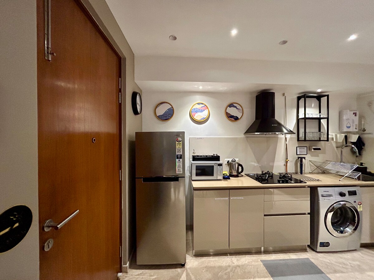 ✨ Skyline Vista Studio — a bright, brand new peaceful hideaway high above the city! 🌄 Enjoy cozy modern interiors with skyline, mountain & water views. Ideal for solo travelers or couples seeking a scenic city escape with comfort & charm. 💛 Features a plush bed 🛏️, smart TV 📺, fast Wi-Fi 📶, private bath 🚿, kitchenette with microwave 🍳 & dining space 🍽️ — all in a secure gated society. Relax, work, or simply soak in the views — a perfect blend of style, comfort & tranquility. 🌟