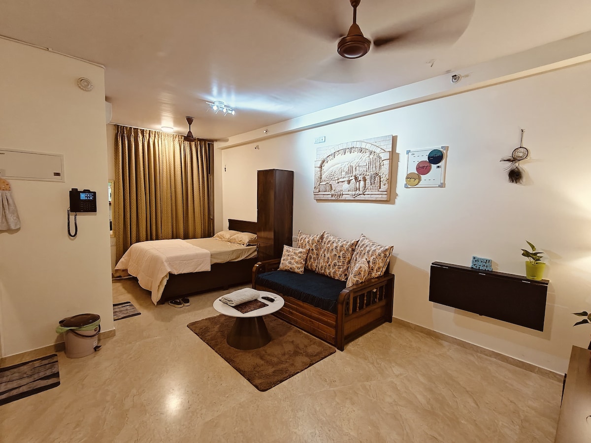 Experience comfort and convenience in this stylish studio in BKC. Located in a gated society with 24/7 security, lift access, and free parking, it’s perfect for business trips or short city breaks. Enjoy a bright, modern space with a full kitchen, fast Wi-Fi, air conditioning, and self check-in. Unwind by the window with skyline views or access the shared pool and gym. Ideal for solo travelers, couples, or remote workers.