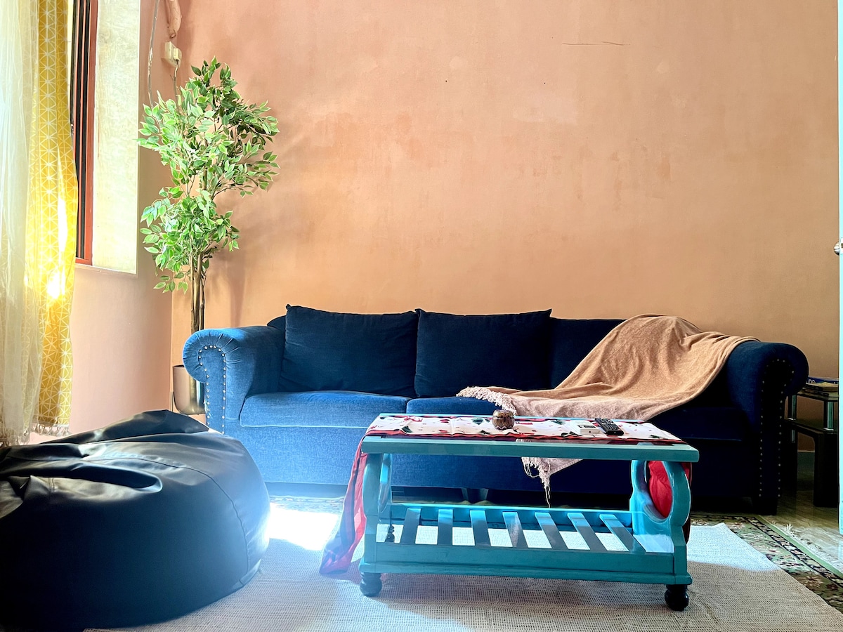 This stylish 2-bedroom homestay with fully equipped kitchen, high-speed WiFi, 43" smart tv is perfect for group trips, family holidays, twin couple hangouts and executive business travel, accommodating a minimum of 4 guests. If booked for 2 guests, access is limited to the lounge bedroom attached to the living room. The second bedroom remains restricted. To use both bedrooms, a nominal extra charge of INR ₹1599/night applies for 2-guest bookings and can be paid through Airbnb payment mode here.