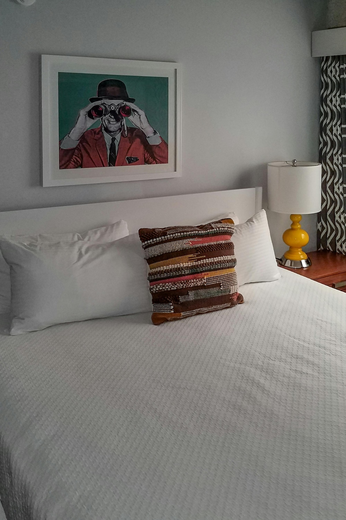 Enjoy the expansive comfort of a king-size bed in the Z King room, perfect for sharing or stretching out solo. Stream your favorite shows on the 43" HDTV with high-speed WiFi, and unwind in European-style double duvets, oversized towels, and micro-fiber bathrobes. Indulge in Tommy Bahama bath products and start your day with unlimited Keurig coffee and bottled water. This room blends playful luxury and relaxing amenities for a truly memorable stay.