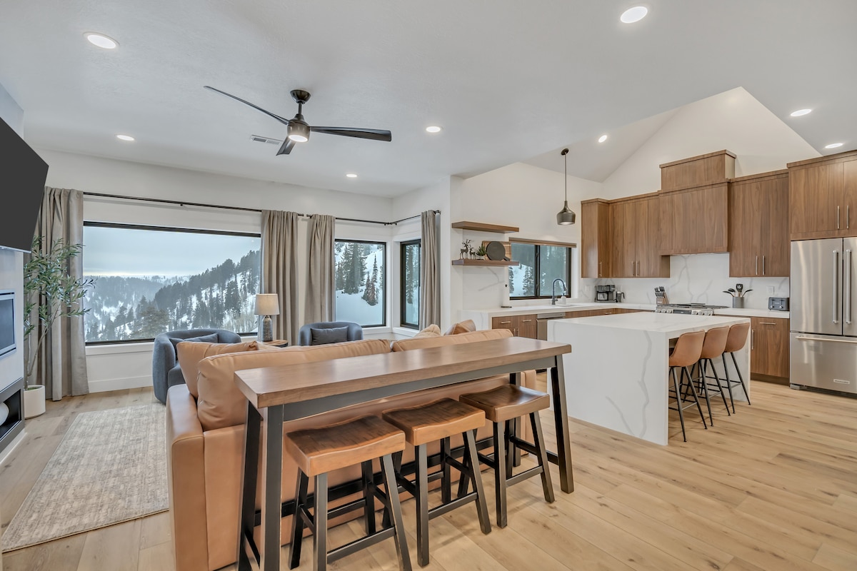 Welcome to a brand-new luxury condo at Powder Mountain, offering modern alpine design and some of the most impressive, front-row ski slope views on the mountain. Located directly across the street from the Sundown Lift, this home places you in the heart of Powder Mountain while still feeling like a private retreat. With expansive windows throughout, the slopes feel close enough to touch. Perfect for peaceful mornings, lively gatherings, and cozy après-ski nights.