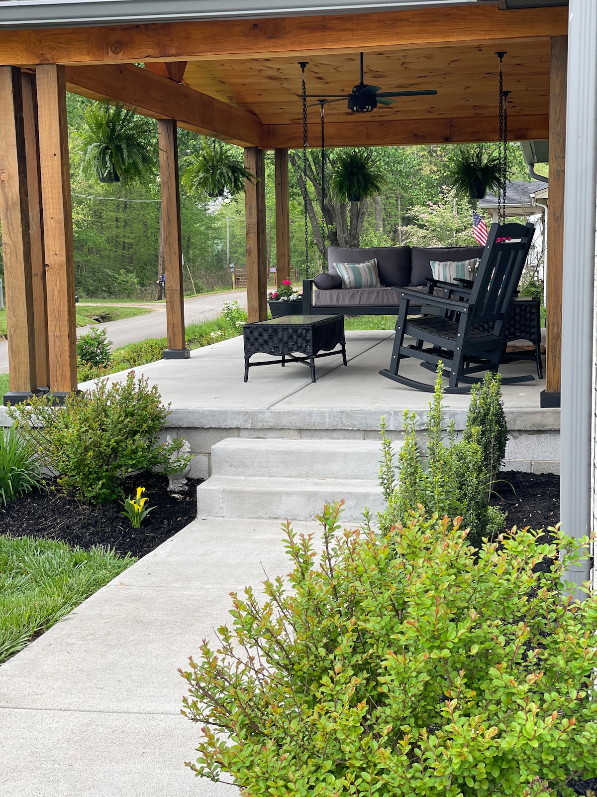 Perfect for holidays, roads always clear in our town! So close to the Red River Gorge, a minute from the parkway, with the convenience of restaurants and shopping just steps from the front porch! Updated and spotless! Private and cozy back yard with fire pit, Adirondack chairs, charcoal grill, and picnic table for making fun evenings at home! Chinese food across the street and Kroger grocery, too! 3 minute walk to Mexican restaurant! So convenient
