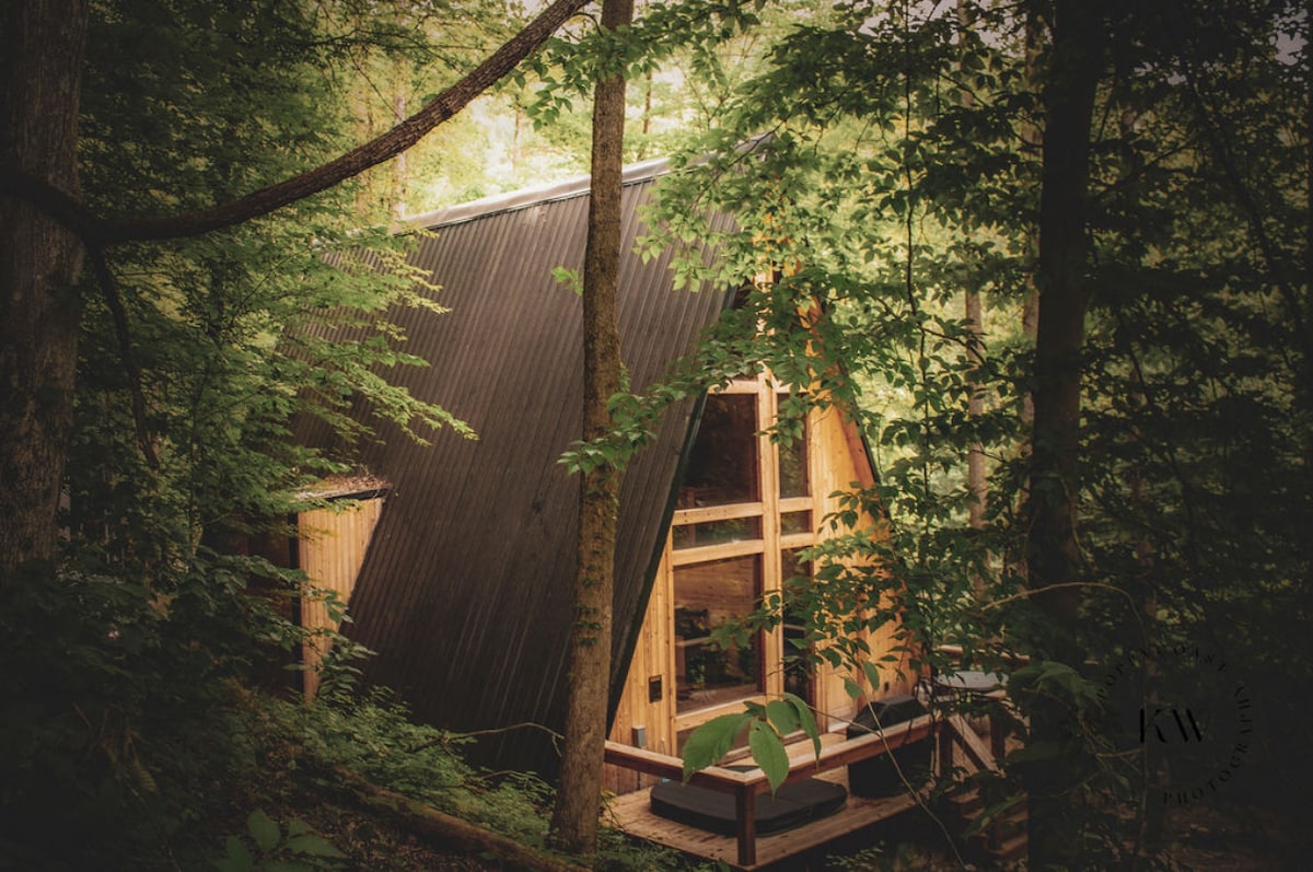 Enjoy your own slice of the Red River Gorge in our unique, cozy tiny house. Soak in the brand new hot tub after enjoying the beauty of “The Gorge,” just a short 15 min drive to the Natural Bridge! Feel immersed in the outdoors with the sounds of nature, tons of natural light, and gentle rain on a metal roof. Roast marshmallows at the fire pit, grill food at the charcoal grill, then take a nap in the 2-person hammock before retiring in the *tiny* loft on a comfortable queen-sized bed.
