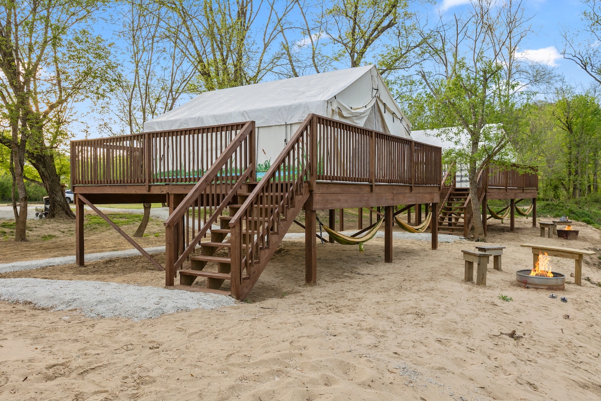 配备家具的豪华露营帐篷/红河河畔/加大双人床