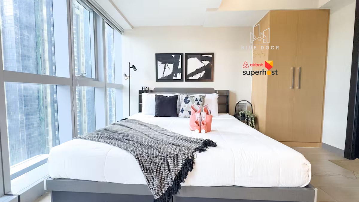 1卧室加大双人床+免费洗漱用品/咖啡@ Uptown BGC