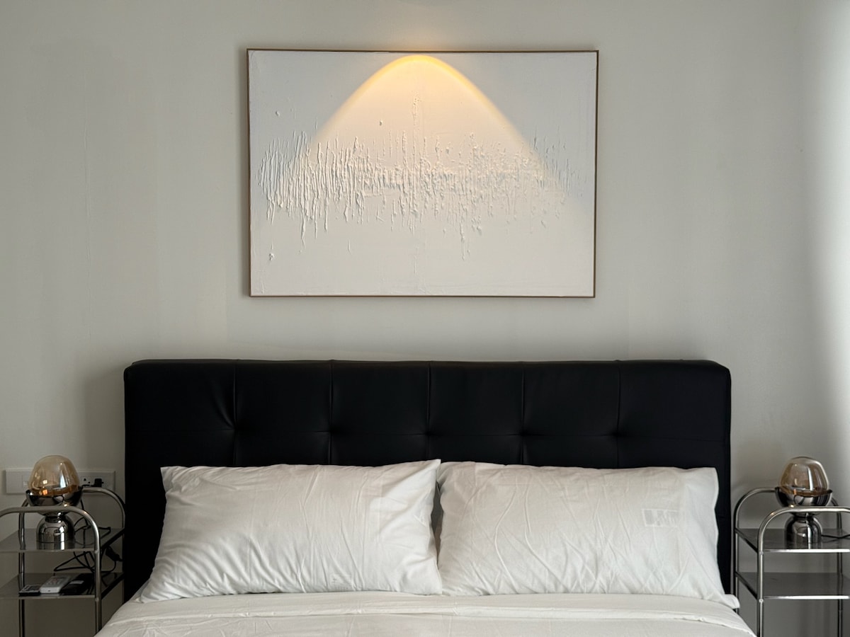 Stay in this unique and stylish mid-century modern LOFT with AMAZING & UNOBSTRUCTED SUNSET and CITY VIEWS in Gramercy Residences, a 5-star condo centrally located in Poblacion. Enjoy this brand-new, centrally-located 1 Bedroom Loft w/ stunning design & original artworks. Located in a high floor w/ 5-star amenities, fully-fitted kitchen, balcony & everything you need for a perfect stay: 300Mbps Fiber WiFi, Netflix, 55-inch smart TV, infinity swimming pool, modern gym, sauna & 24/7 concierge etc.