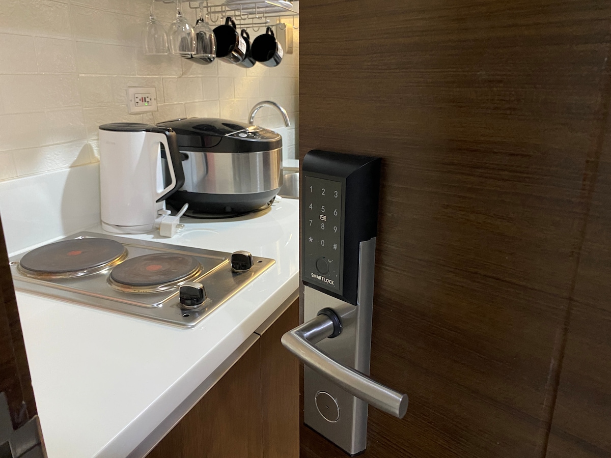 Enjoy tranquility in Pasay City at our Urban Oasis, ideal for couples, solo travelers, and remote workers. Relax with fast internet, a cozy living room, and a fully equipped kitchen. The queen size bed with premium mattress, linens guarantees restful nights, and the bathroom offers a bidet and hot shower. your peace of mind, your comfort and your well-being are our top priority. Explore nearby cafes, restaurants, and the Mall of Asia. Book now or contact hosts Mylene and Bat for any requests.