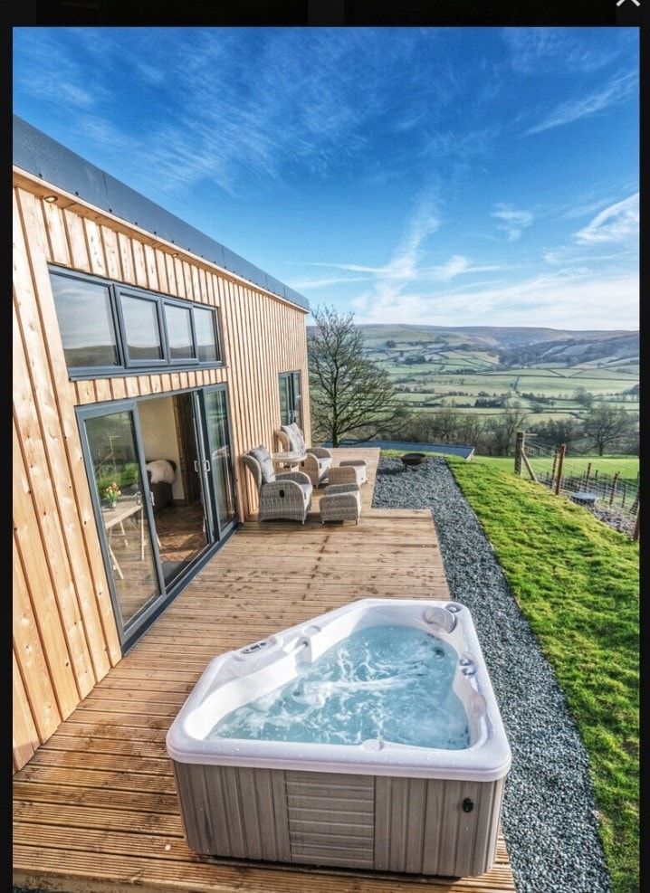 威尔士乡村豪华小木屋,配备热水浴缸