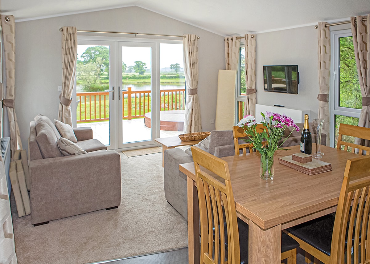 Lakeview Lodge is a newly renovated luxury lodge just waiting to be discovered. Situated in 34 acres of beautiful landscaped grounds on Caer Beris holiday park, 3/4 of a mile just outside of Builth Wells in Powys with stunning views of the lake just below and the sound of the countryside around you, you are guaranteed complete relaxation during your stay with us. The lodge comprises open plan living with two bedrooms (2 king size beds or one king size which can be split into 2 single beds)