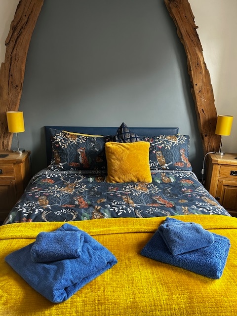 Relax in this calm space, surrounded by nature and a large, peaceful garden. You have your own private en-suite shower room and a comfortable bed suitable for single or double occupants. There's also a small unit including sink and drainer, mini fridge, microwave, kettle and toaster for your private use in the space. In warmer weather, enjoy sitting outdoors and exploring our local area, including the historic towns of Bishop's Castle & Montgomery - you are right on the border here in Snead ☀