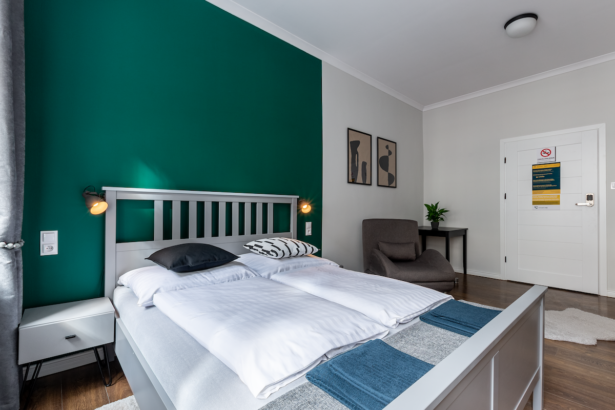 Discover a stylish and comfortable apartment in the heart of Poznan City Center, ideal for 4 adults. Bright and airy, the living area flows into a fully equipped kitchen and dining space, perfect for cooking and relaxing. The main bedroom features a king bed and a dedicated workspace, while the second bedroom offers two singles or a queen. Stay connected with Wi-Fi, enjoy AC, a washer and dryer, and unwind on the private patio.