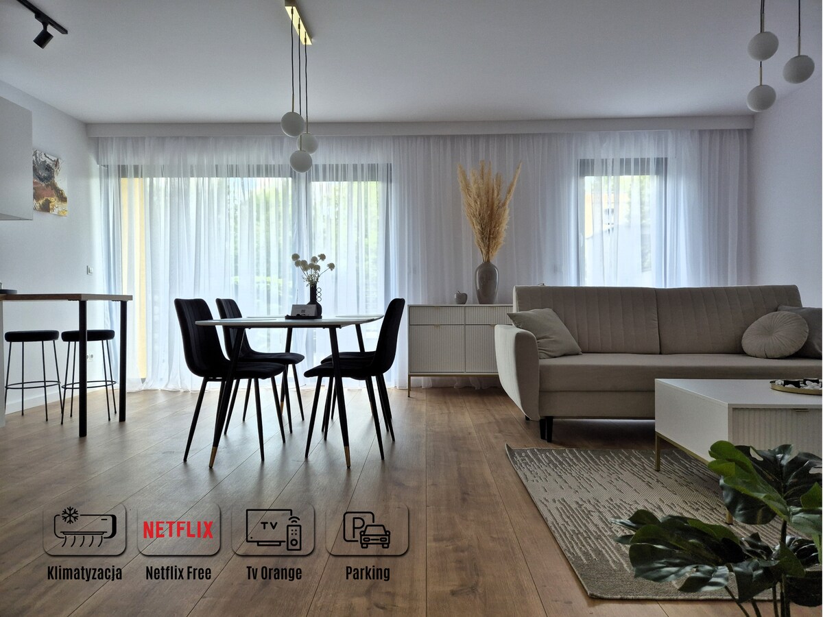 波兹南的公寓,带停车场和花园。