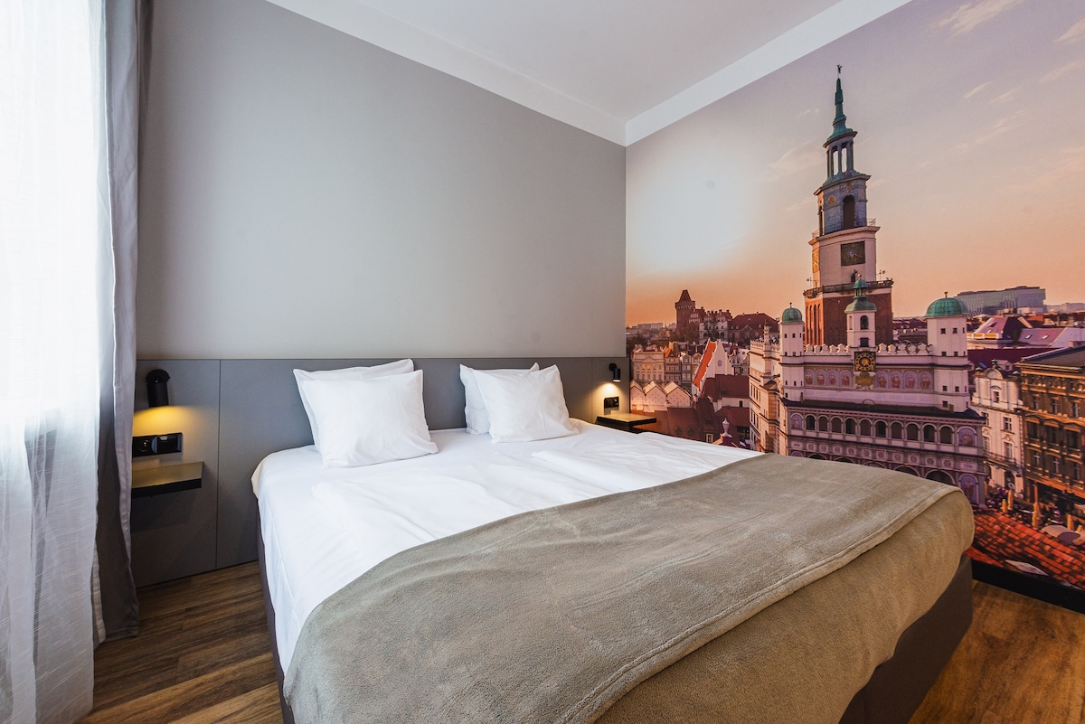 🏡 About this place Welcome to our stylish 2-person room at Aparthouse, just steps from the Old Market Square in Poznań! The room’s unique character was designed to combine original design with functionality. Highlights: self check-in, monitored parking, and an on-site restaurant. Perfect for tourists and business travelers – quick access to Poznań International Fair while enjoying a quiet side street in the city center.