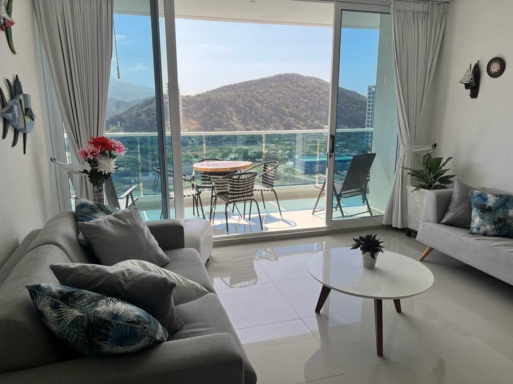 bienvenido a este encantador apartamento en santa marta, un lugar acogedor con todo lo que necesitas, para una estancia inolvidable, este espacio luminoso, refrescante y bien decorado te hará sentir como en casa, cuenta con comodidades modernas una vista sensacional atardeceres y a unos pasos de la piscina este a parlamento está completamente equipado brindándote las garantías para disfrutar de un ambiente acogedor. además, ubicado en un lugar central, cerca de las hermosas playas de santa marta