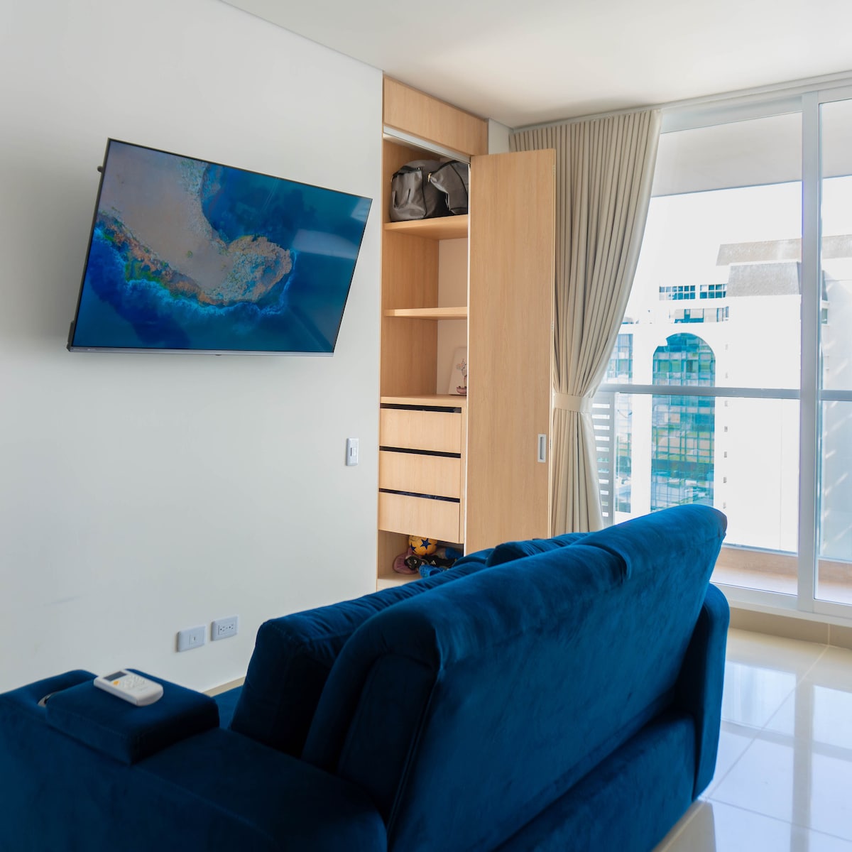 Modern, fully equipped one-bedroom apartment in the heart of Santa Marta, with beautiful waterfront sunsets and a variety of amenities including swimming pool, sauna and gym to make your vacation as comfortable and relaxing as possible. Within walking distance to Santa Marta’s International Marina and its beautiful boardwalk which will lead you to the oldest historic center in continental America and where you will find many restaurants and a lively night life.