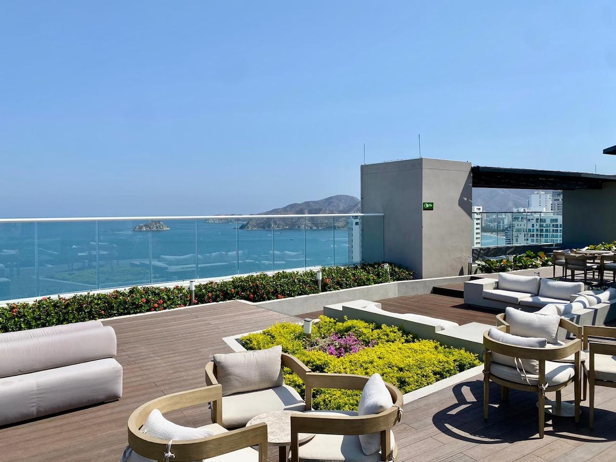 🏖️ ¡Bienvenido al paraíso en El Rodadero, Santa Marta! Disfruta de nuestro moderno apartamento con espectacular vista al mar en la zona más exclusiva de El Rodadero. 🌟 CARACTERÍSTICAS DESTACADAS: - Aire acondicionado - WiFi de alta velocidad - Piscina en la azotea con vista al mar - 3 min de la playa 📍 UBICACIÓN IDEAL - 15 minutos del Aeropuerto - Cerca de restaurantes, supermercados - Acceso fácil a Parque Tayrona, Taganga y Minca Perfecto para parejas, familias y nómadas digitales.