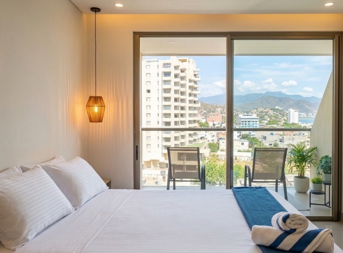 🔆Lujo y confort en Playa Salguero. Apartaestudio nuevo con WiFi de alta velocidad (900Mbs), ideal para relax o workation. Disfruta de piscinas, jacuzzis y coworking sin costos extra 💫LO MEJOR: Vistas: Balcón a la Sierra Nevada Confort: Cama Queen y cocina equipada 💫EXPERIENCIAS PREMIUM ($): Logística: Transporte privado (Aeropuerto) Chef en Casa: Menú personalizado (compras y preparación incluidas). Desayunos: A la carta A pasos del mar y comercio. ¡Reserva tu estancia profesional!