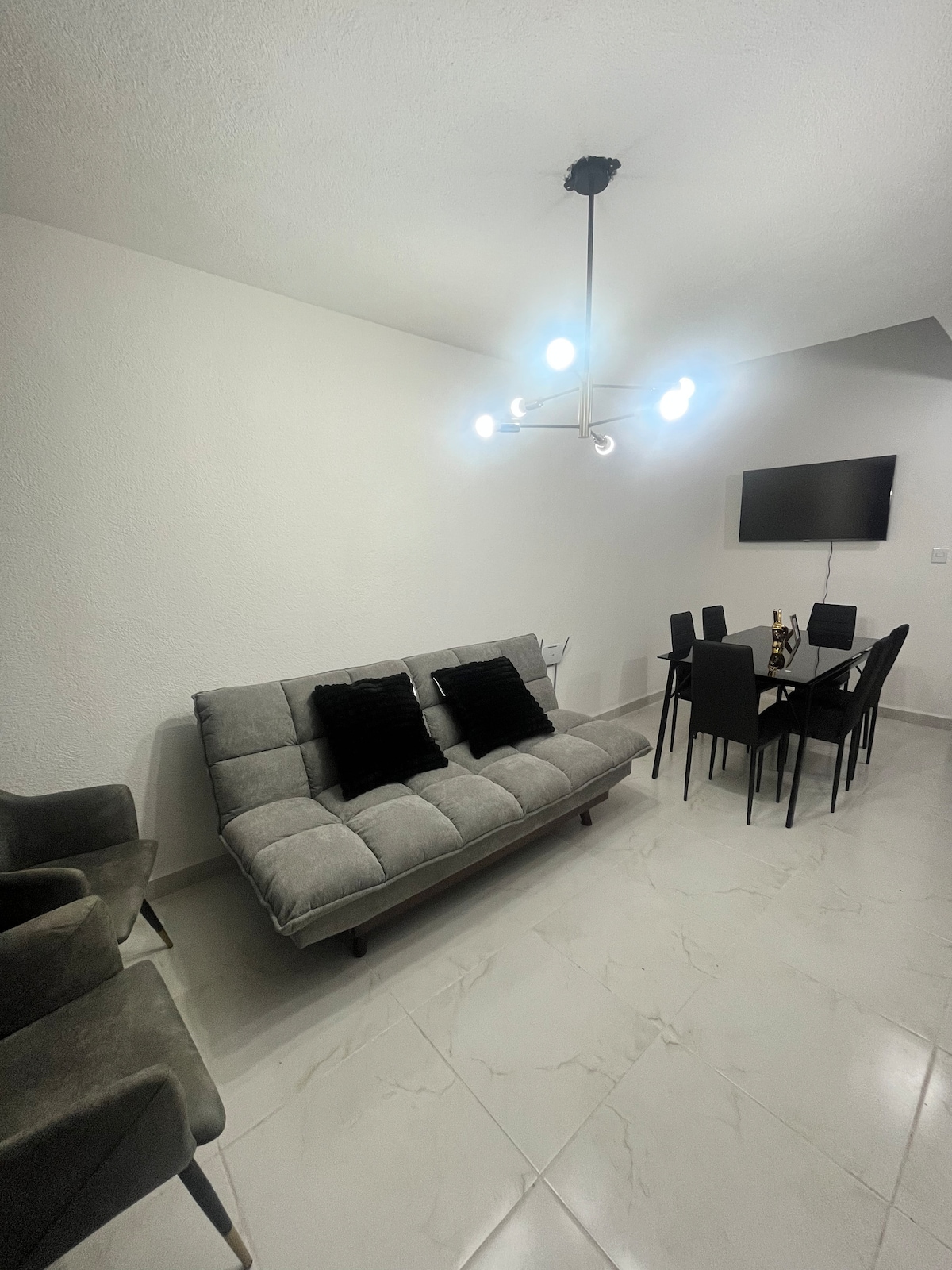 Comfortable house with 2 bedrooms and 4 beds. Inside a residential development with 24 hrs. security. It has access to amenities such as a terrace for events, heated pool, green areas and gym. It is located in Villa de Pozos and very close to the industrial zone. Easy access by highway 57 or Rio Verde highway.
