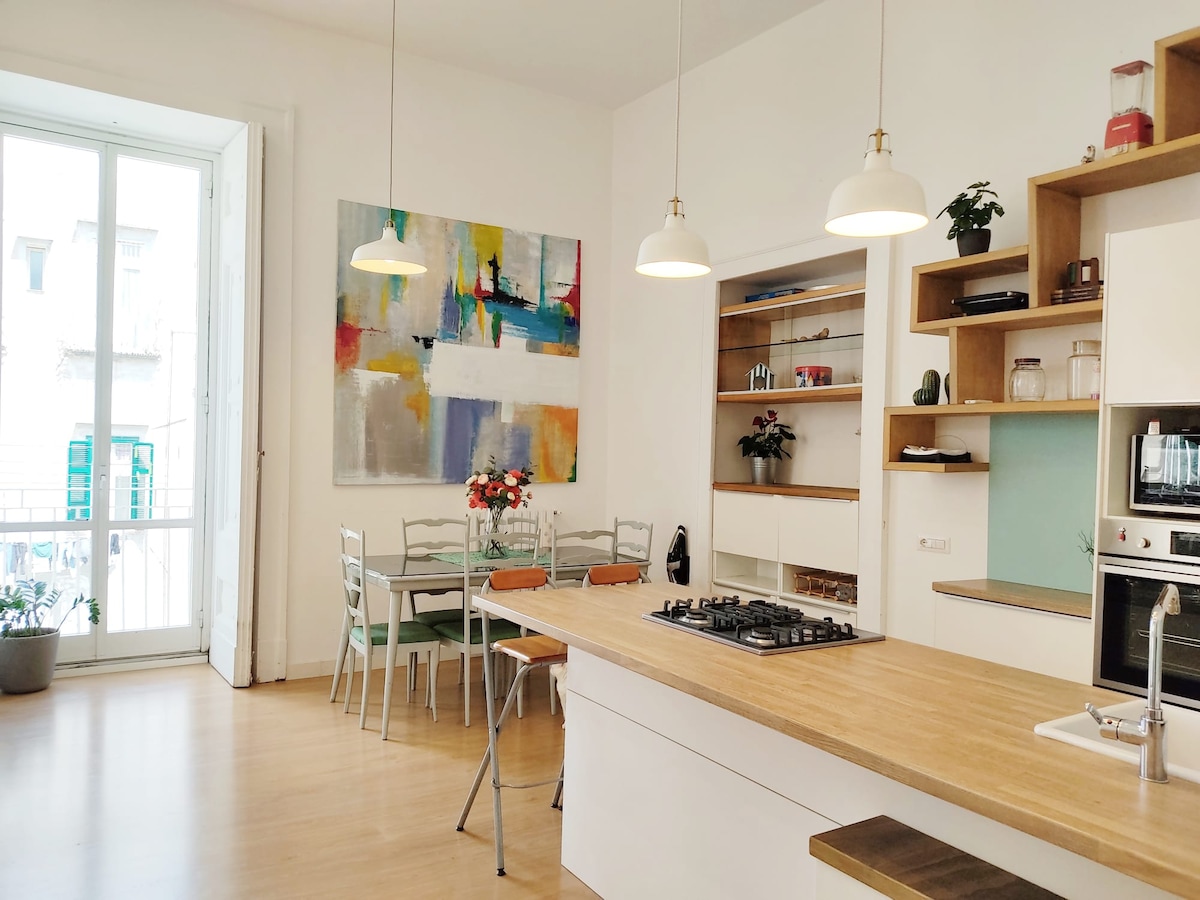 Luxury apartment: a combination of classic elegance and modernity, just renovated with JACUZZI and PRIVATE ROOFTOP of 90mq where you can admire the volcano Vesuvius. Located in a historical building on the 3rd floor without elevator in the heart of the old town, you can reach everything by walking. WiFi, PrimeVideo, Nespresso and luggage storage for FREE Points of interest • 2 min Duomo • 4 min Underground Naples • 6 min Metro L1 & L2 • 5 min Train Station • 10 min Harbour