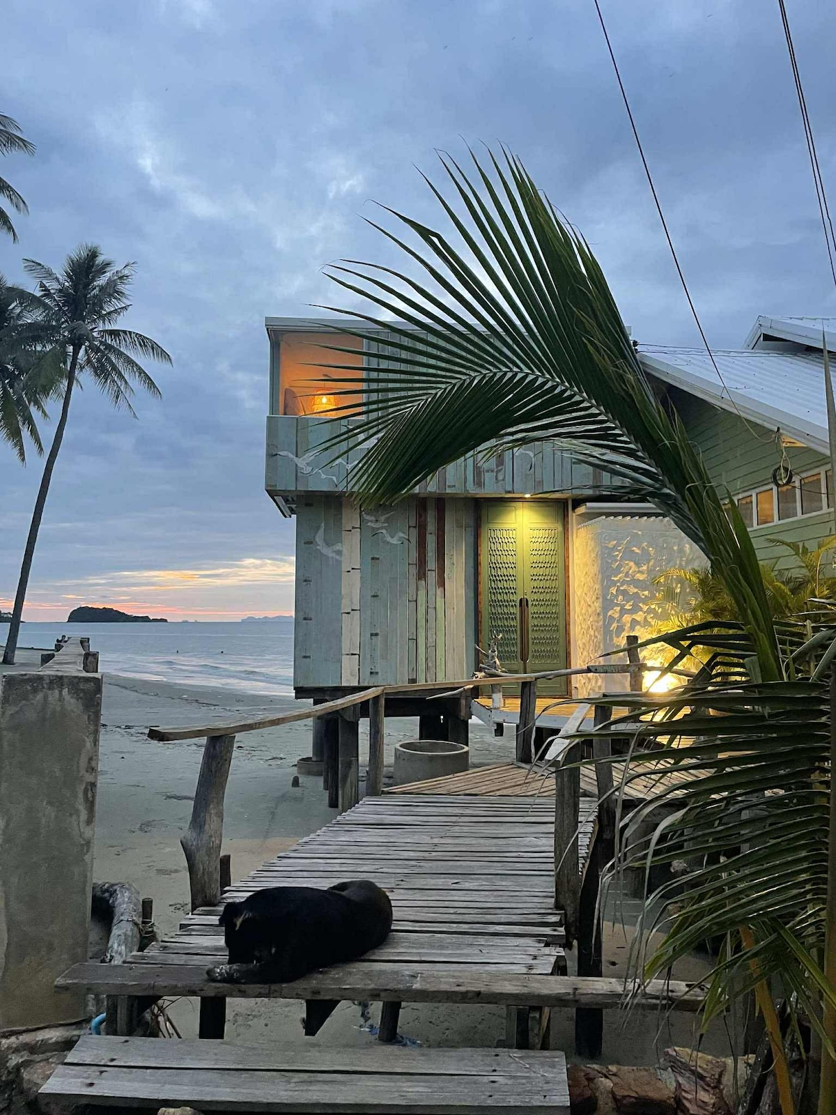 Chaba House is a traditional Thai style fisherman's home, built on stilts above the sea in the quaint fishing village of Koh Lanta's Old Town. The home is made of recycled materials such as bamboo, tin, & wood. With it's bohemian decor, you get a mix of old + new in this unique open air home with modern amenities. ***NO AIRCON! Please be sure to read the full description to ensure that this is the home for you!***
