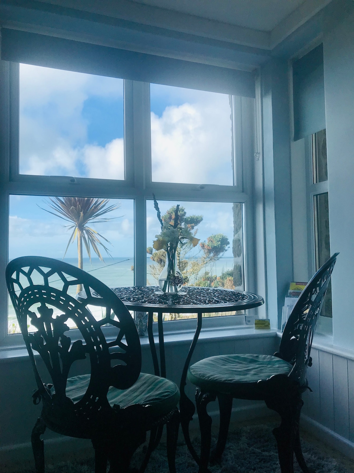 Spectacular ocean view 200 yards from cliff and beach walks. Newly refurbished, luxurious, clean, ensuite room with TV, and sitting area. Private annex to the main house with own separate entrance. Can be configured as KING BED - OR DIVIDED AS 2 SINGLES IF REQUESTED. Please select 2 guest option if not travelling solo. Wifi. Vegan house, eco cleaned. Choice of breakfast cereals tea, coffee & plant based milk included - small fridge and beverage making facility. Microwave. Free Parking.
