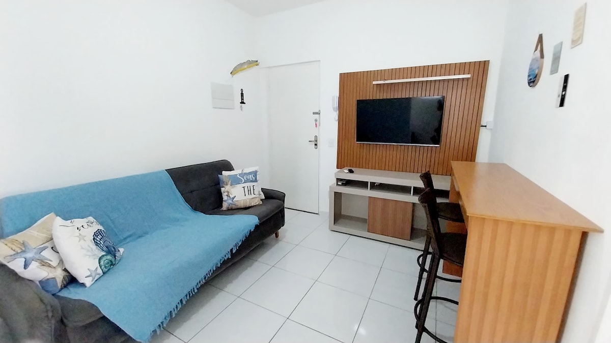 🌊 Vista para o Mar + a apenas 2 minutos da praia! Condomínio novo, seguro e localizado na melhor região da Praia Grande. Apartamento completo, com: • Varanda gourmet para relaxar • Cozinha equipada • Wi-Fi e Smart TV • Cadeiras de praia e cooler Tudo perto de bares, restaurantes e mercados — sem precisar tirar o carro da garagem. Superhost ⭐ | Avaliações excelentes | Ideal para casais, famílias ou amigos