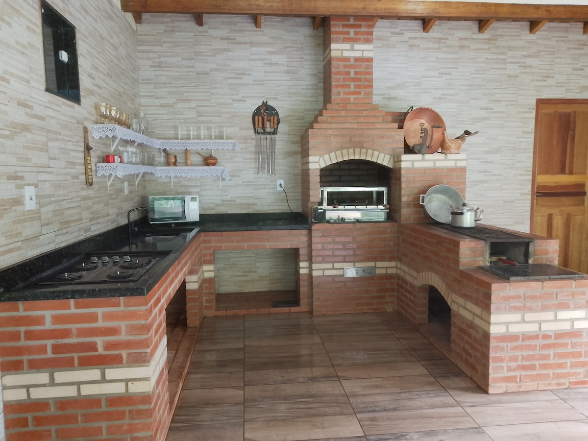 Excelente casa no centro de Domingos Martins. Perfeita para famílias com crianças. Amplo quintal, garagem coberta, cozinha, área de churrasqueira, ducha externa, 3 quartos sendo duas suítes com cama de casal e outro com uma cama de casal, banheiro social, lavanderia completa. Na sala há a possibilidade de utilizar sofá-cama (2 lugares). Não inclui roupa de cama e de banho. Brinquedos para crianças disponíveis. É permitido presença de animais e possui espaço totalmente cercado.