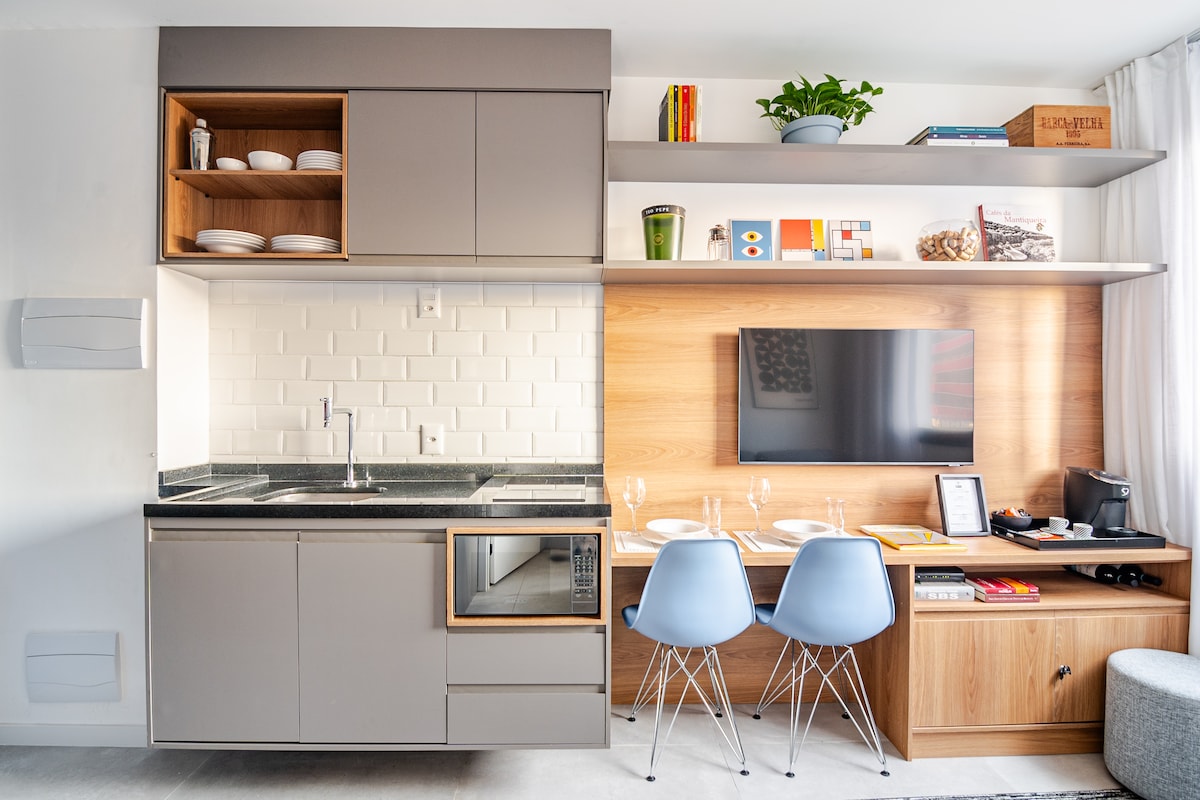 Wi-fi 600mega, ducha higiênica, televisão, Netflix, Prime TV, geladeira, microondas, cooktop, cafeteira Nespresso, secador de cabelo, automação de iluminação e som ambiente! Ouça suas músicas preferidas durante sua hospedagem e escolha a iluminação perfeita para seus momentos! A cama de casal é retrátil e pode ser guardada no armário se precisar de espaço Prédio com lavanderia, academia, piscina, garagem. Prédio vizinho ao Le Condon Bleu e rodeado de padarias, restaurantes, pizzarias e bares