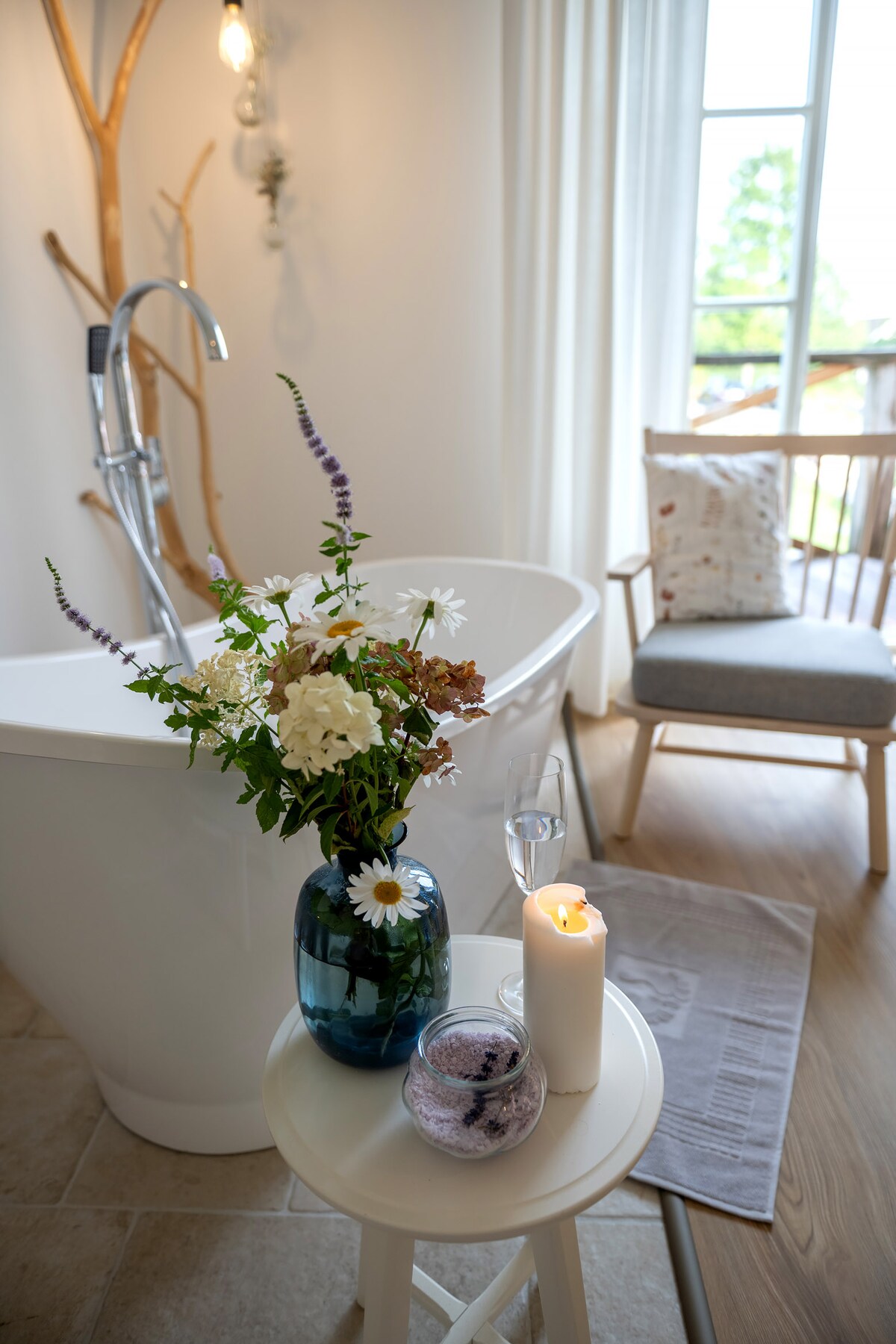 Smart design accommodation. A self-service shop with alcoholic and non-alcoholic beverages, homemade jams, and products from local artisans. We don't just offer white walls, a bed, and a television to get through the night. We provide accommodation that respects your maximum privacy, where you'll feel at home. Play your own music from your phone on the BOSE Bluetooth speaker, watch your favorite movies on the smart TV or iPad. Relax in the private sauna or on the terrace. Enjoy!