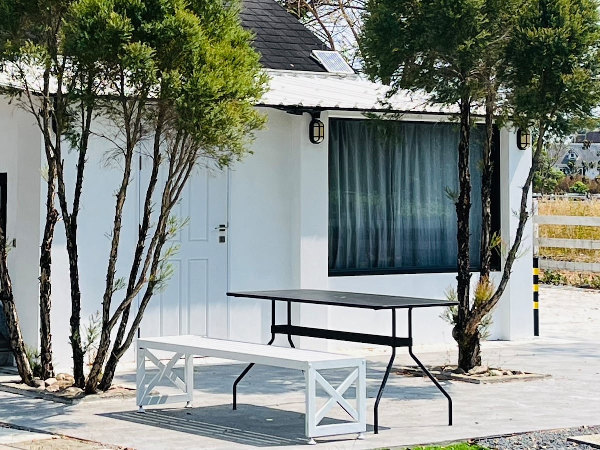 บ้านสวนหลังน้อย 2 ชั้น 30 ตรม. สไตล์นอร์ดิกไทย มีเฟอร์นิเจอร์และเครื่องใช้ไฟฟ้าครบ เช่น แอร์ ทีวี ตู้เย็น เครื่องเสียงคาราโอเกะ เตาไมโครเวฟ เตาบาร์บีคิว เครื่องทำน้ำอุ่น ตั้งอยู่ในสวนเนื้อที่ 3 ไร่ มีทั้งผลไม้และไม้ป่าร่มรื่น เช่น ต้นจามจุรีที่มีกิ่งโน้มหากันจนเกิดเป็นอุโมงค์ต้นไม้สวยงาม มาทดลองใช้ชีวิตเรียบง่ายสไตล์มินิมอล แบบชาวสวนต่างจังหวัดที่แสนจะเรียบง่าย ท่ามกลางธรรมชาติอันสุขสงบร่มเย็น บนเนื้อที่ 3 ไร่ มีบ่อน้าถึง 4 บ่อให้พายเรือเล่น และมีฝูงควายเดินหากินโดยรอบ มีผลไม้ให้เด็ดกินได้