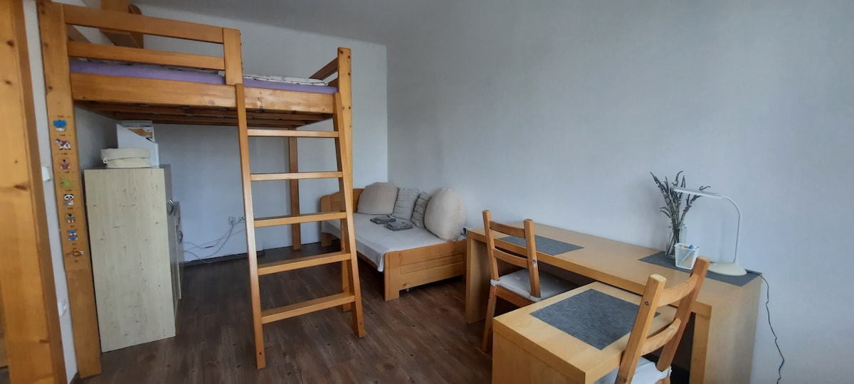 Cosy stylish apartment with a great location in the best quarter of Liberec. Walking distance (5-15 min) to the city centre, ZOO, botanical garden, museum, gallery, swimming pool, forest, supermarket, local market, public transport (tram, bus). Only 15 min drive to the mountains (Bedřichov od Ještěd).