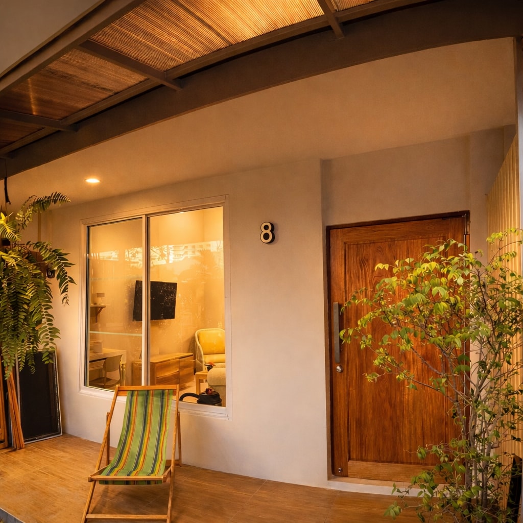 Private bungalow with access to shared features, pool and outdoor dining area. Located in the suburbs of Prachuap in a quiet area in the country side.