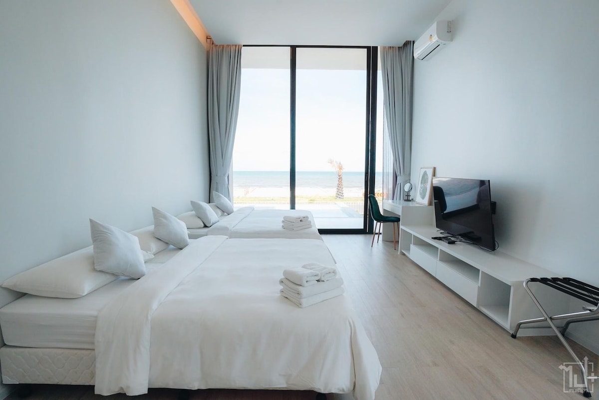 75m²/800ft², Rare Beachfront Villa, for Family & Group ! Private Pool w/ Jets | Fully Fenced 🌿 2BR (1K&1Q) + 2AC Living Room w/ Fast WiFi+Smart TV Stocked Kitchen & In/Outdoor Dining area BBQ area & Cabana In-house Washer Large Bathroom Near: 🌌 Cicada NightMarket: 15–20min 🏰 Royal Palace: 5min 🌙 Queen’s 19 Rai Night Market: 0min 🪁 Market Village: 10min 🌊 Beachfront Cafes & Restaurants: 5min Convenience: 🛒 7/11: 3min 🛒 Villa Market: 6min 🛒 Makro: 7min 👉 wishlist & click the ❤️