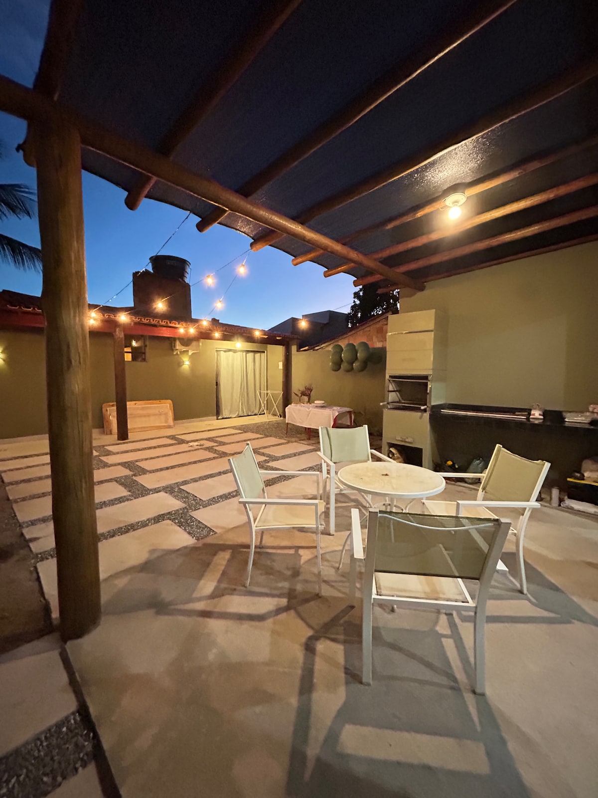 A casa em um bairro novo próximo ao centro e a 800 metros da praia e prossimo a supermercado etc. Na área lazer temos piscina iluminada pergolato, gourmet com mesa, freezer, churrasqueira elétrica, fogão e banheiro. Um jardim grande onde pode levar seu pet e estacionamento. Na parte interna da casa encontra uma cozinha super equipada com máquina de lavar prato e máquina de lavar roupa, ferro elétrico, microonde e liquidificador etc. Quatro quartos climatizados, sala Tv com Wi-Fi e 3 banheiros.