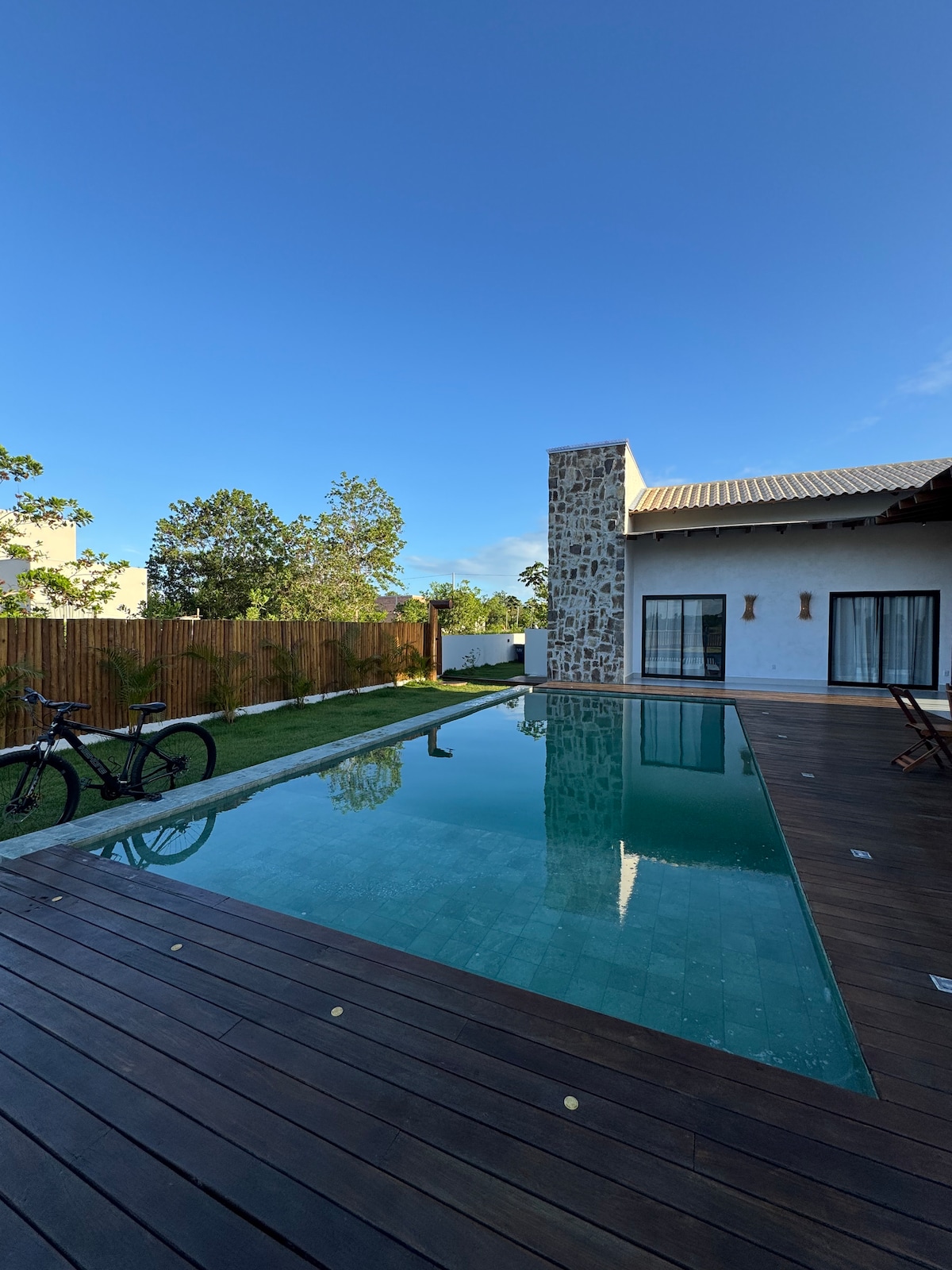 Casa nova espaçosa, quartos amplos e cheio de vida! 🏖 450m da praia, 5 min do centro de carro. - 4 suítes completas com ar condicionado split ❄️ - Piscina refrescante - Churrasqueira. - Wifi e SmartTV - ROUPA DE CAMA e TOALHA: Disponível com taxa extra. - Sala, cozinha e jantar integrados em um ambiente arejado, perfeito para reunir família, amigos. Pertinho das melhores barracas do Prado, do centro da cidade e do Beco das Garrafas, onde desfrutará de excelente gastronomia.