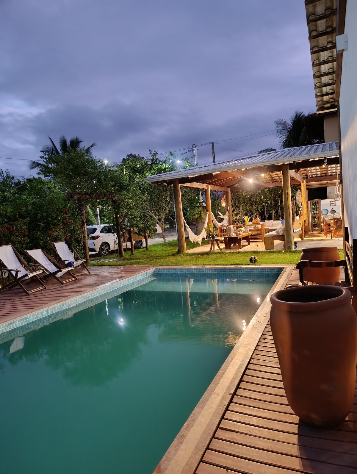 Se você busca descanso, contato com a natureza e momentos especiais em família ou a dois, este é o lugar perfeito! Nosso espaço é como uma pequena pousada charmosa, composta por aconchegantes bangalôs independentes, em um ambiente cercado de verde e muita tranquilidade. Piscina ampla para relaxar e se refrescar Parquinho infantil, ideal para os pequenos Espaços ao ar livre para descansar e se conectar com a natureza Ambiente tranquilo e seguro, perfeito para casais, famílias e grupos de amigos