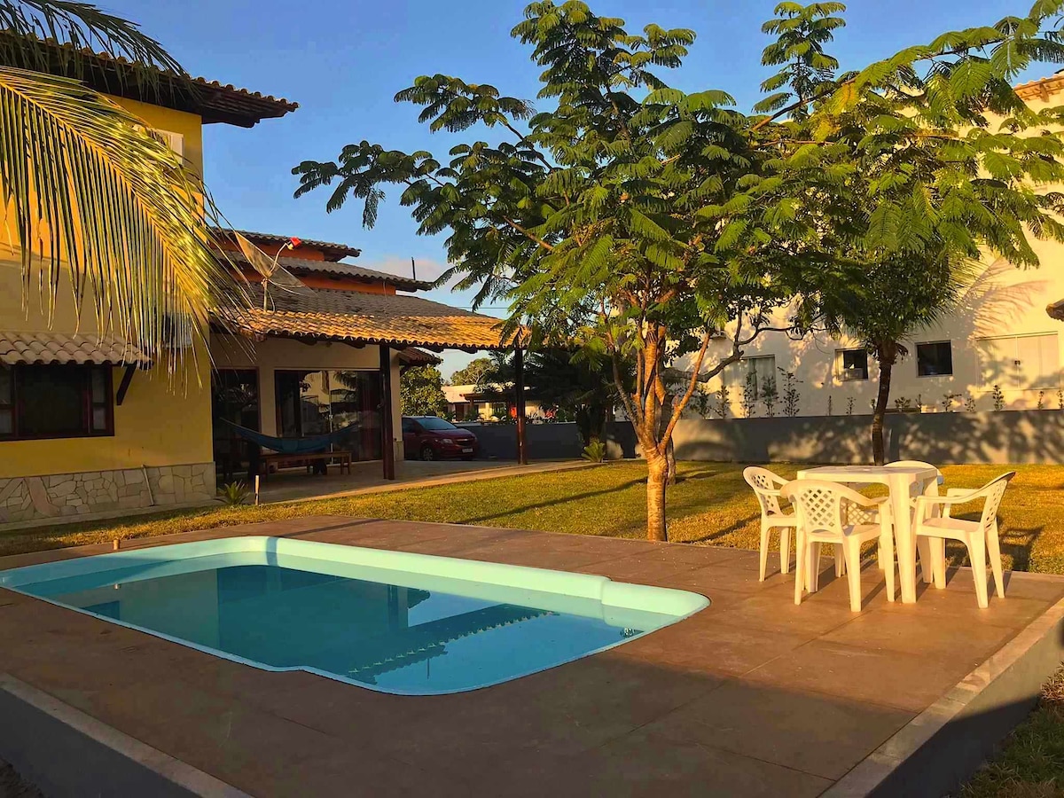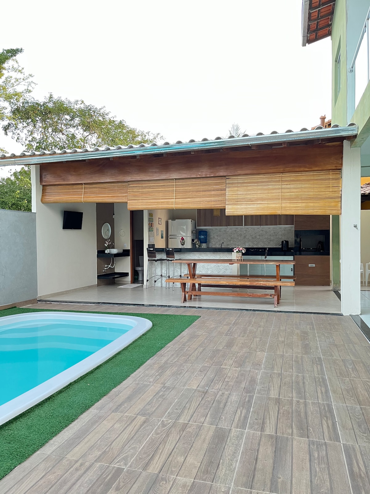 Casa em condomínio fechado, perfeita para relaxar! Fica a mil metros da praia, oferece 2 quartos, sendo uma suíte, sala de estar/TV, cozinha toda equipada e área externa com churrasqueira e piscina privativa. Ideal para famílias e grupos de amigos, é um espaço aconchegante, cercado por natureza e próximo a restaurantes e atividades locais. Aproveite dias ensolarados e noites tranquilas em uma localização privilegiada, perfeita para quem busca segurança, conforto e lazer próximo da praia.