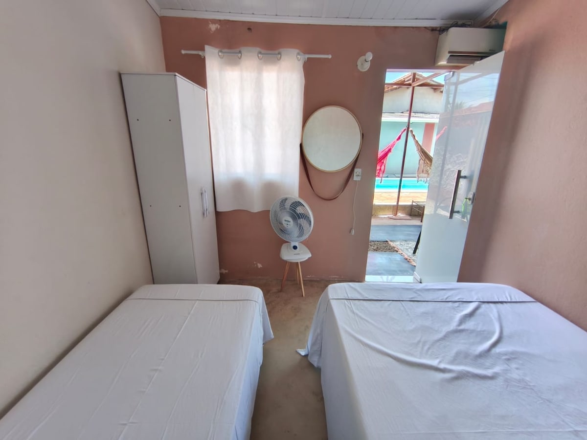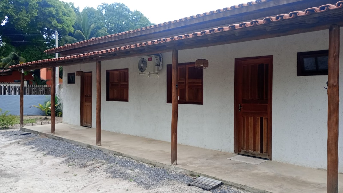 O Chalé AIPIXUNA é o do andar térreo de uma casa de dois andares. Demos o nome de Chalé AIPIXUNA por fazer referência ao bicho preguiça, na língua indígena! Ali, é comum ver macacos e pássaros coloridos entre as árvores, e, com sorte, avistar uma preguiça! Imagina estar deitado em uma rede apreciando uma preguicinha?! E a praia? Muuuuito tranquila e encantadora! Fica a menos de 50 metros de distância, ideal para famílias e amigos que procuram por sossego, e mesmo trabalhadores remotos!