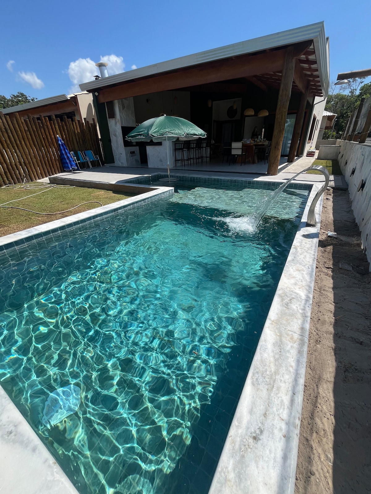 # Descrição Casa no Rio do Peixe, área nobre de Cumuruxatiba. São 4 suítes com Smart TV e ar-condicionado, comportando até 12 pessoas. Serviço de camareira incluso. A cozinha têm bancada ampla e é totalmente equipada, com geladeira, freezer, micro-ondas, liquidificador, forno, panelas, talheres e potes. Para a diversão e conforto de todos, a casa é equipada com: - Piscina - Banheira de hidromassagem aquecida para 5 pessoas - Churrasqueira - Cervejeira