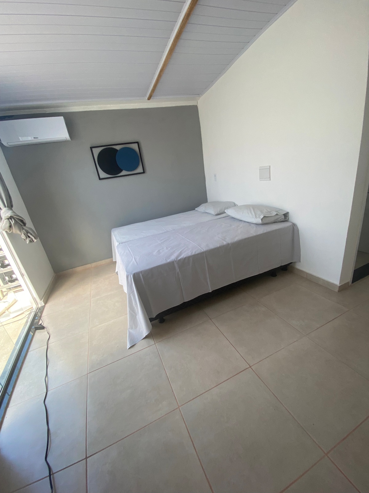 Suíte Master - Cama queen size, frigobar, ar split e ventilador de teto Importante: Além do fornecimento da concessionária, oferecemos luz solar com bateria, em caso de falta de luz a casa e abastecida em até 12 horas pelas baterias. A exceção dos aparelhos de ar condicionado, tudo funciona normalmente durante este período inclusive os ventiladores. Corumbau falta luz com certa frequência, observe esta situação em sua pesquisa na localidade.