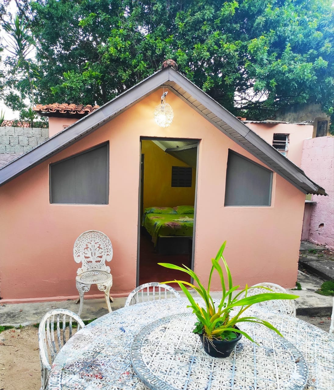 SOSSEGO, SIMPLICIDADE E PRIVACIDADE. Nosso espaço é cercado por árvores e plantas em um ambiente muito natural, Temos apenas 3 chalés, garantindo privacidade aos hospedes. Area externa: cozinha, piscina, espriguicadeiras, poltrona e cadeiras de balanço super relaxantes e tranquilas. Quarto: 1 cama de casal, 1 de solteiro banheiro privativo, ar cond, smart tv e frigobar. Nosso espaço é ideal para pessoas que buscam privacidade e tranquilidade, fora da agitação e trânsito do centro de Cumuru.