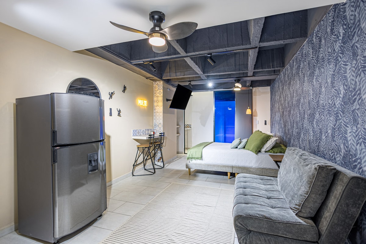 Estudio moderno y cómodo, ideal para parejas o viajeros que buscan una excelente ubicación en Medellín. Cuenta con cama doble, WiFi rápido, baño privado y una hermosa vista de la ciudad desde el balcón. Ubicado en una zona segura y bien conectada, cerca de restaurantes, comercio y transporte público. Perfecto para descansar, trabajar y disfrutar la ciudad con comodidad.