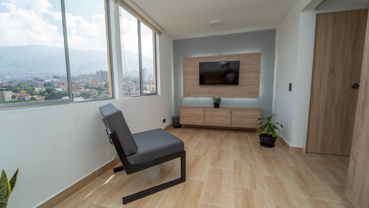 🛎️ Pay 0% service fee on Airbnb! 🛎️ ✨ Exclusive benefit for our guests ✨ Stay in a modern studio on the 21th floor with stunning panoramic views of Medellín. Fully furnished and equipped, perfect for both short and extended stays.🌆 Located in a safe residential area with 24/7 front desk, surrounded by shops and residences. Just steps from restaurants, supermarkets, the tram, and only minutes from the metro, with taxis and buses right at your doorstep for easy city access.
