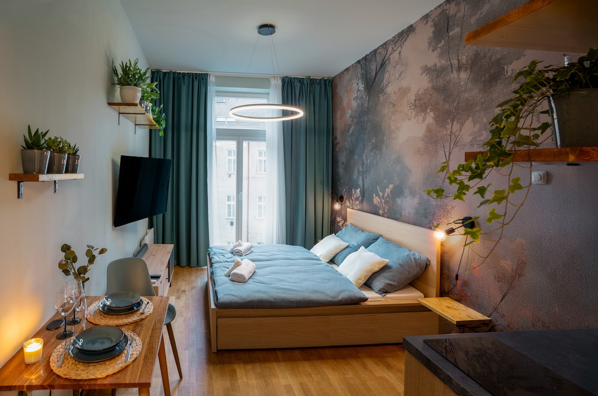 A new, luxury, one bedroom apartment in recently renovated historical building in the old center of Prague. The apt. has very modern interior combined with classic wooden elements. There's a quiet bedroom with double bed and a high quality mattress, a fully equipped kitchen, a comfortable living room with a sofa bed and a separate bathroom. Fast internet. The apt. is perfect for two but it comfortably hosts up to four guests. The building has 24/7 receptionist and security on duty.