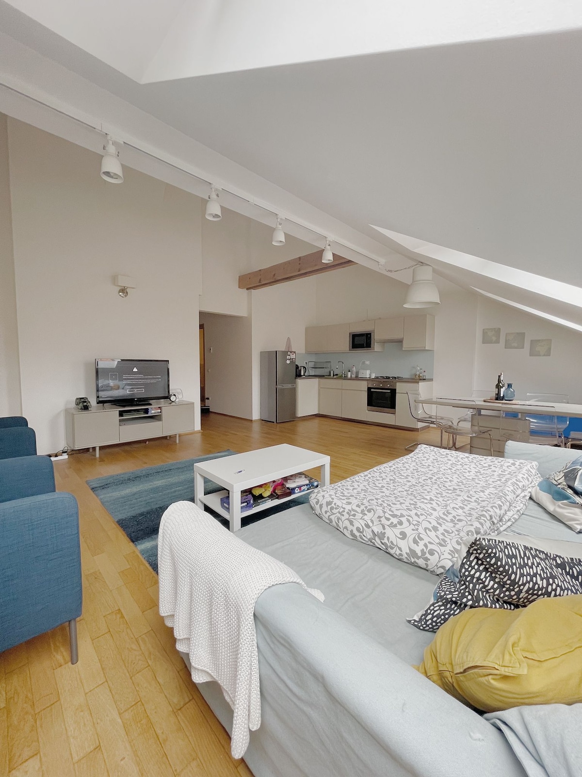 The apartment is a designer modern apartment located in a beautiful building in Prague and is located in the very center of Prague - Old Town Prague - the most historical part of the city and located in a beatiful passage full of restaurants and shops yet its very quiet The history of the building dates back to the 12th century, but has been recently renovated. The apartment features 1 x king size bed, 1 x sofa bed , fully equipped kitchen , air conditioning , smart tv , high speed internet