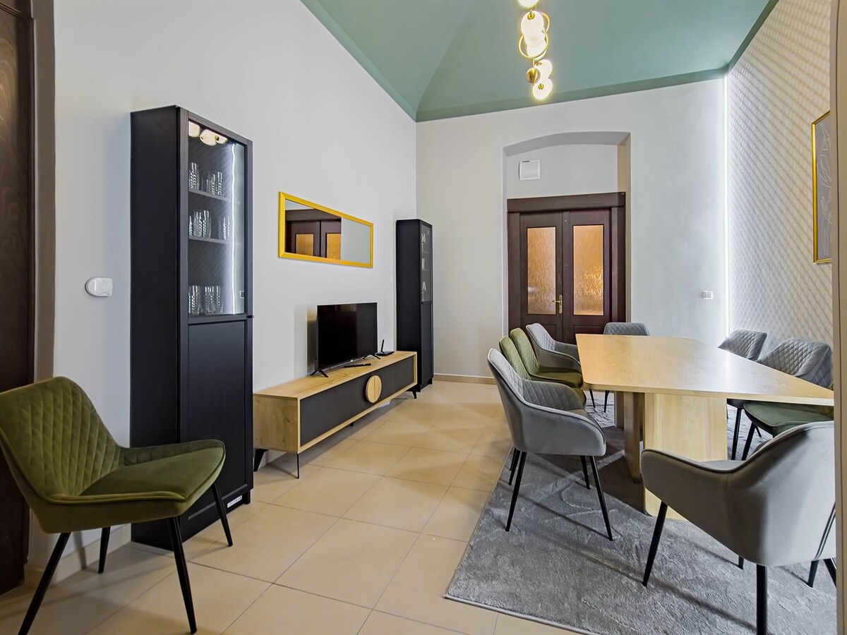 2023 Finalist of TOP Modern-Classic Design competition. Stay in the most stylish apartment which you have ever seen. Please note - NOT a PARTY apartment. The best location: - 2 min from National Museum and Wenceslas' square. - 3 min from the main train station. - 1 min from the most beautiful Riegrovy sady park. The equipment - watch movies in home cinema quality - giant screen - relax in infra sauna The design - carefully selected elements and furniture underlining the historical style