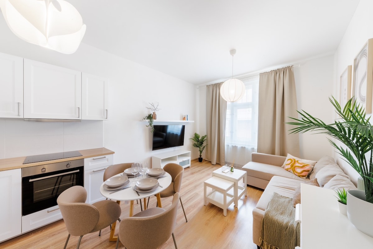 布拉格市中心时尚公寓,可提供停车位。
