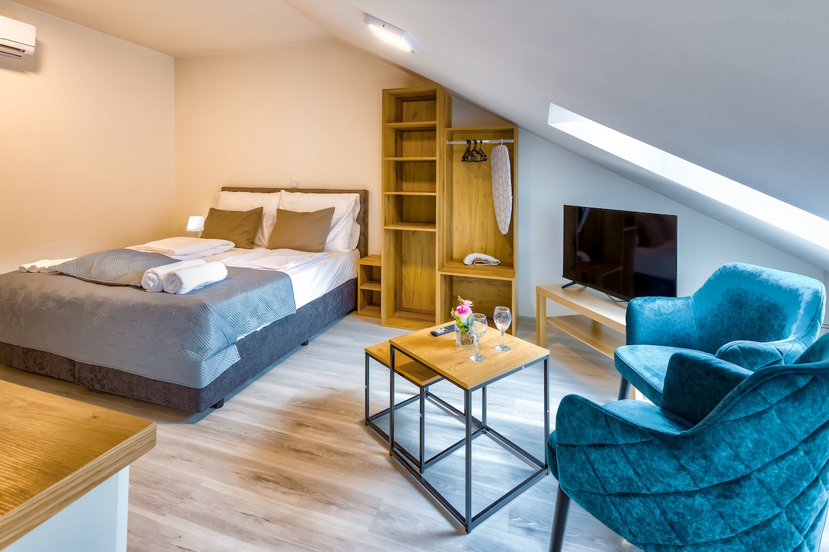 Vaulted Luxury Retreat je stylové designové apartmá v centru Prahy, pár minut od Hlavního nádraží. Klenuté stropy, cihlové detaily a luxusní koupelna s volně stojící vanou vytvářejí výjimečnou atmosféru pro romantický i pracovní pobyt. Perfektní kombinace soukromí, komfortu a skvělé polohy pro objevování města.