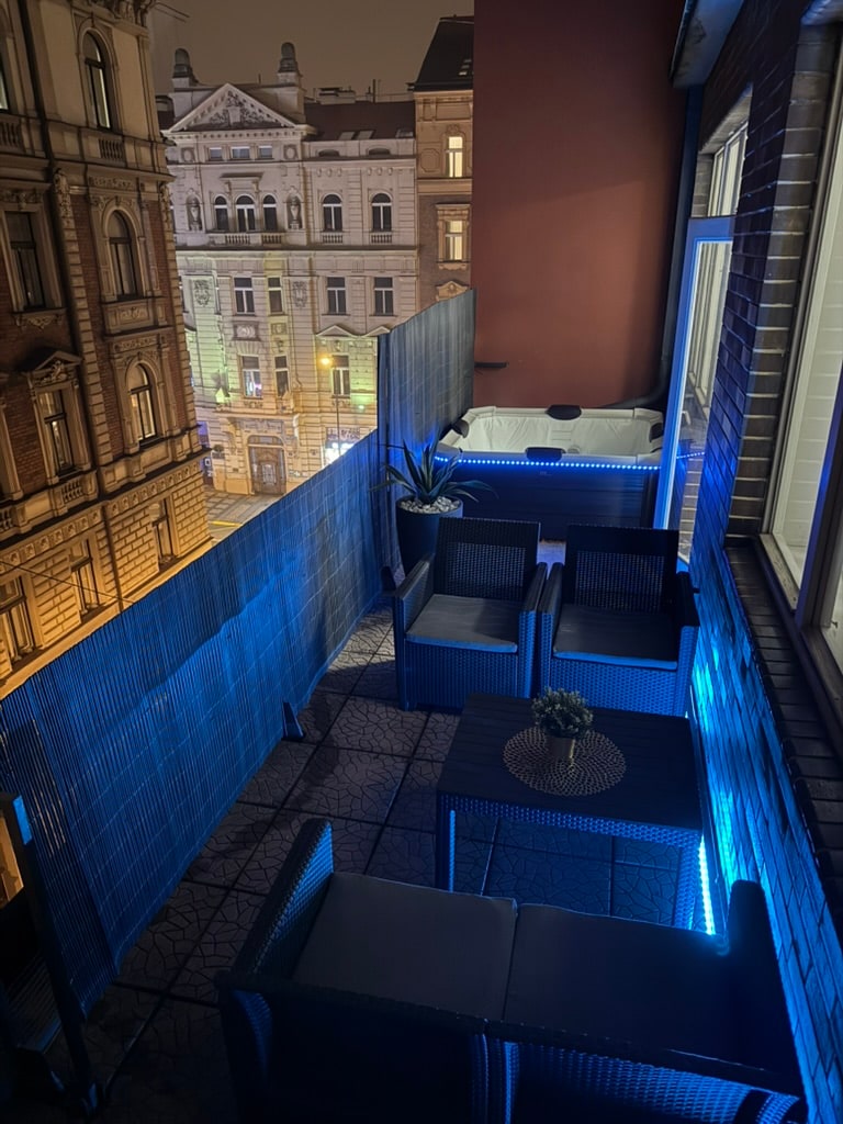 Luxury Apartment with Hot Tub and Terrace in the Heart of Prague! Enjoy an unforgettable stay in this spacious three-level apartment just steps from Wenceslas Square. The apartment features a large terrace with a private hot tub, five bedrooms including one with a private balcony, and 3.5 bathrooms for maximum comfort. A fully equipped kitchen is perfect for home-style meals, while the living area offers a TV with Netflix, HBO and Disney+, as well as a PlayStation 5 for gaming and entertainment.
